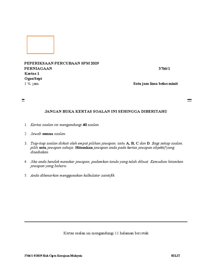Peperiksaan Percubaan Spm 2019 Perniagaan 3766 1 Kertas 1 Ogos Sept Pdf