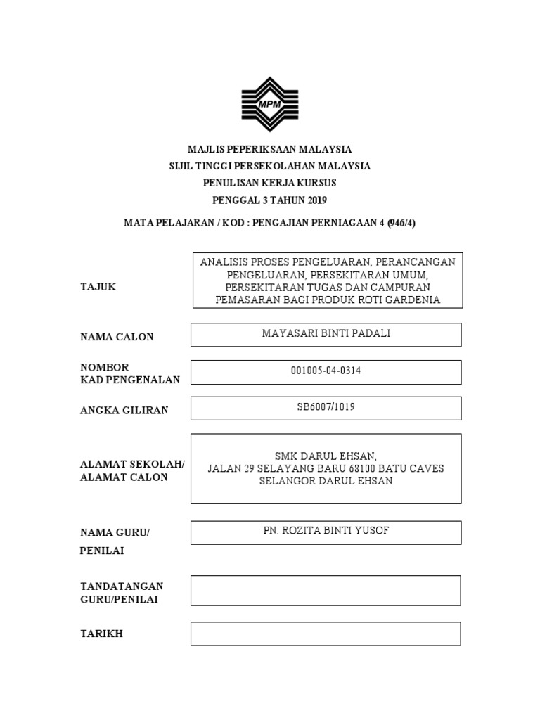 Contoh Kerja Kursus Perniagaan Tingkatan 5 Nashcxt